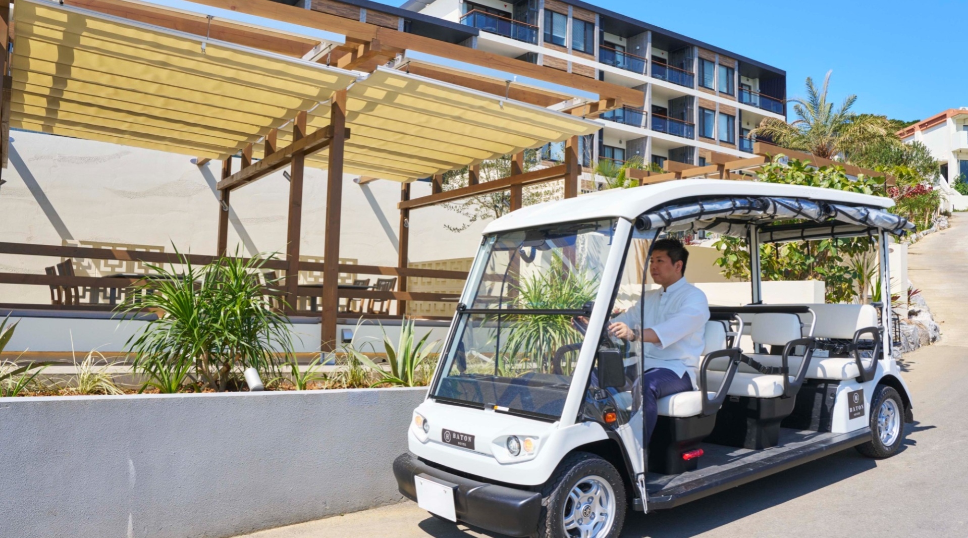 | 備考 | ※ご送迎が可能な範囲は古宇利島内のみとさせて頂いております。 ※混雑時は乗り合いの可能性がございます。 ※参加人数に限りがございます。 ※天候により中止になる可能性がございます。 ※途中下車し観光される場合、その場でカートの待機は出来かねます。 下車した場所に1時間以降後のお迎えになる可能性がございます。 お迎えご希望の際はホテルへのご連絡をお願い致します。 |