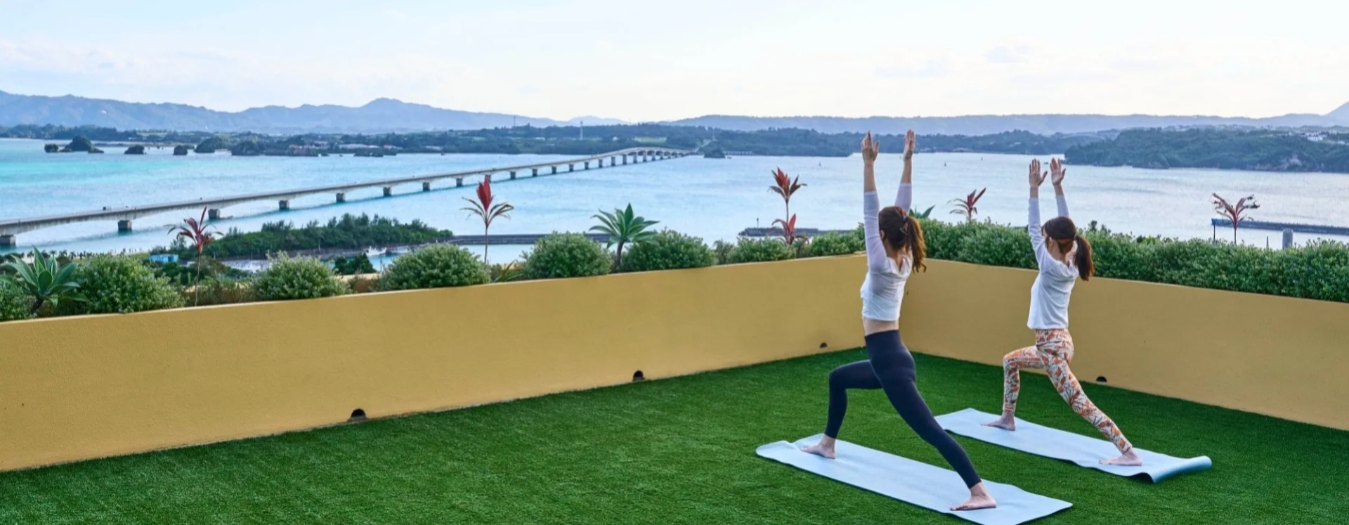 海に架かる古宇利大橋を目の前に、解放感を得られるヨガで心も体も癒しましょう