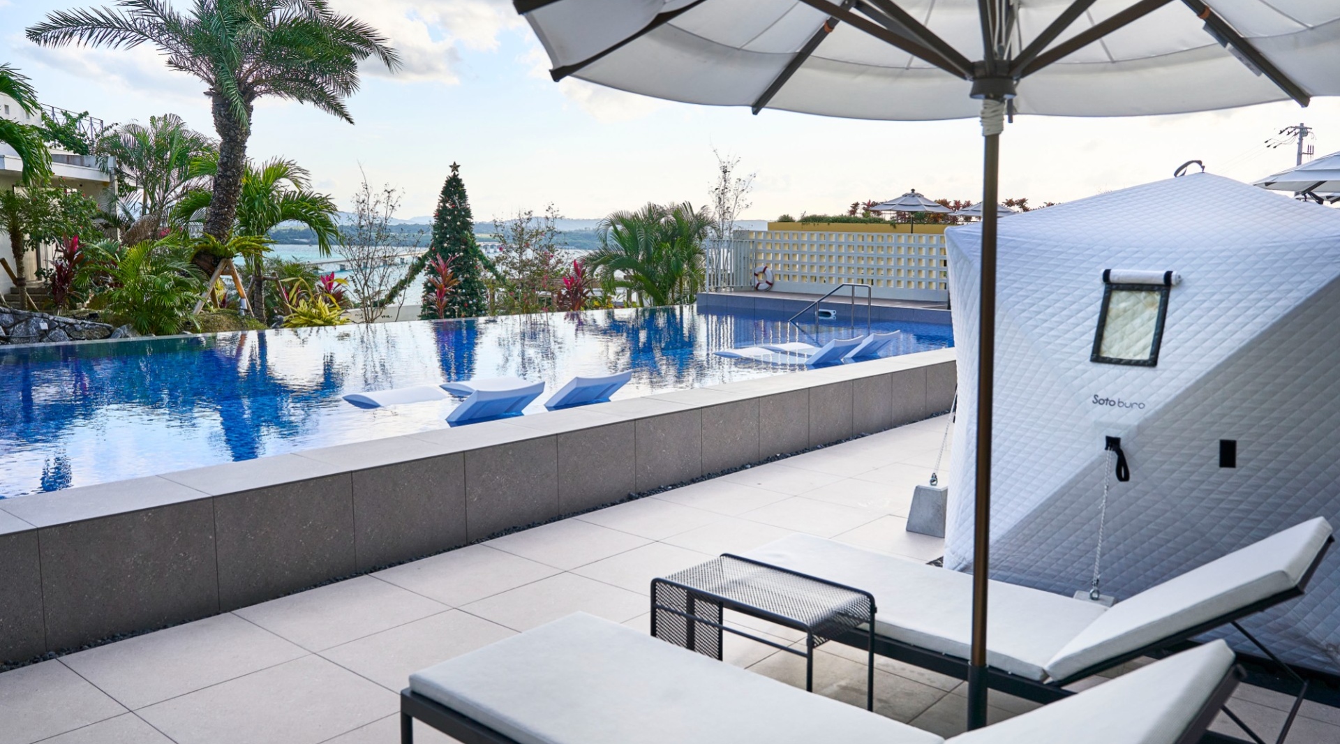 本場フィンランドをイメージした設計・香り・温度にこだわり、セルフロウリュによる蒸気の癒しと、水風呂代わりのプールをご利用いただけます。風が抜ける外気浴スペースまで、“ととのう”ための全てを揃えました。