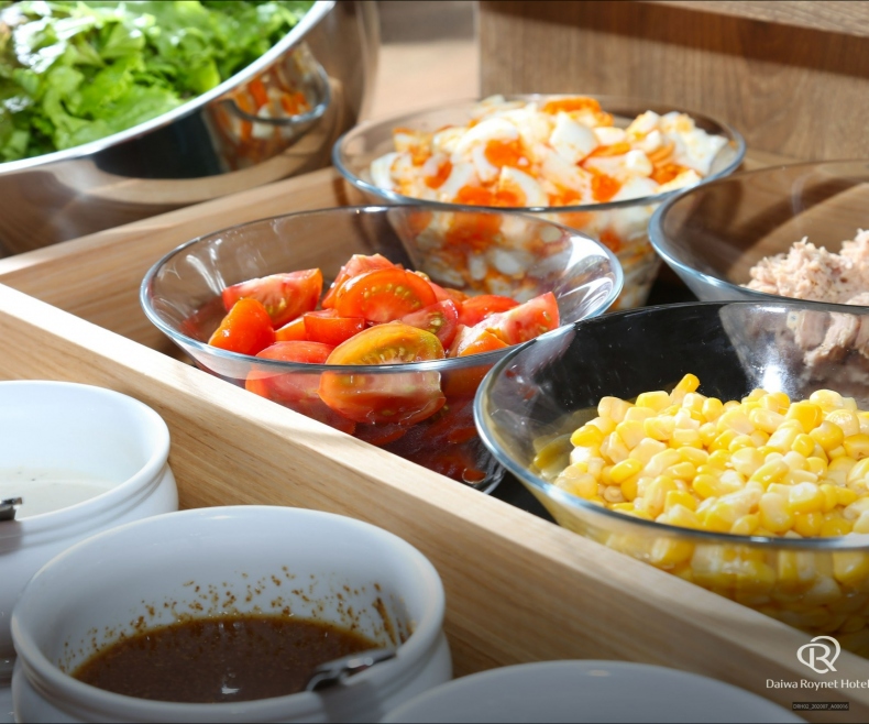 ホテル1階イタリアン「ACQUA E SOLE」の朝食は、千葉県産の食材や本場イタリアからの輸入食材をふんだんに使った、和洋折衷のビュッフェ形式で用意しております。一日の始まりにふさわしい、季節感漂う料理をお愉しみください。