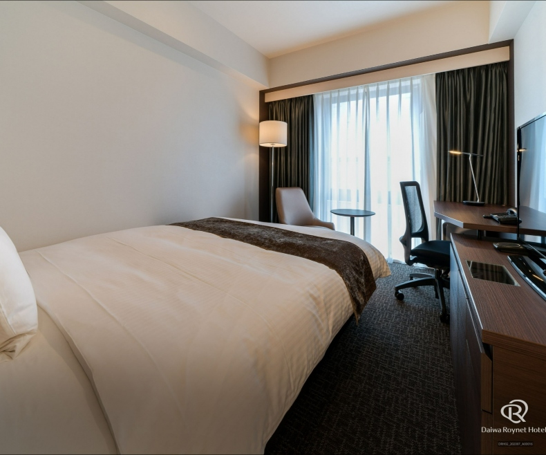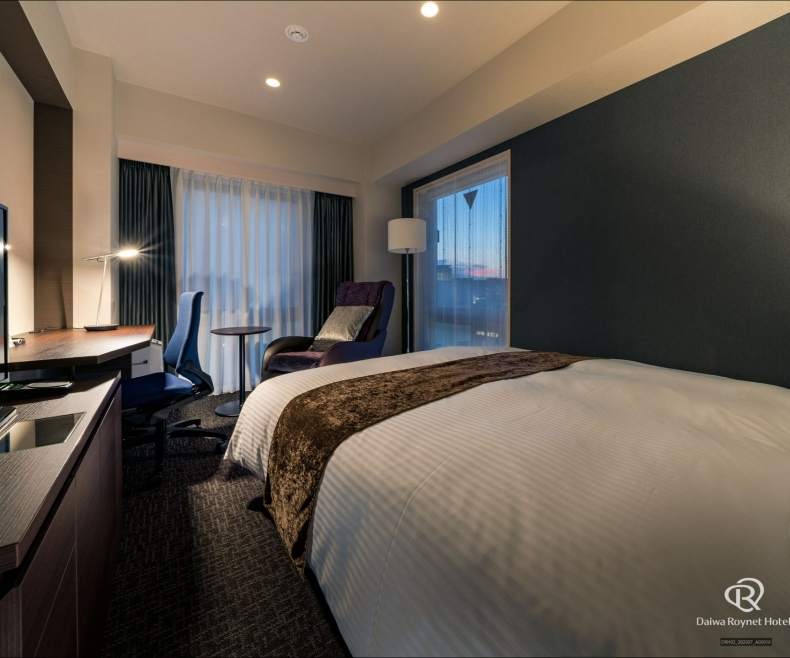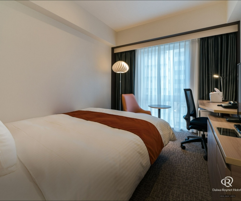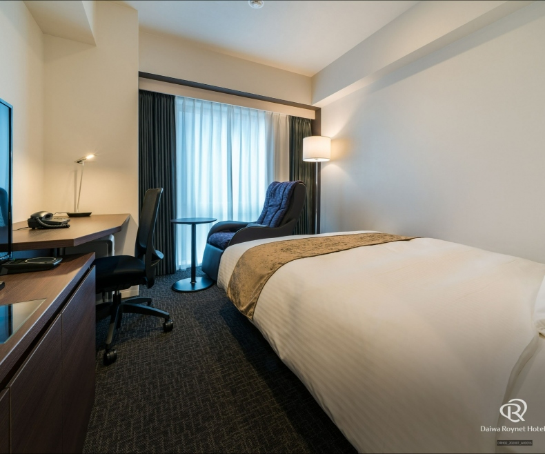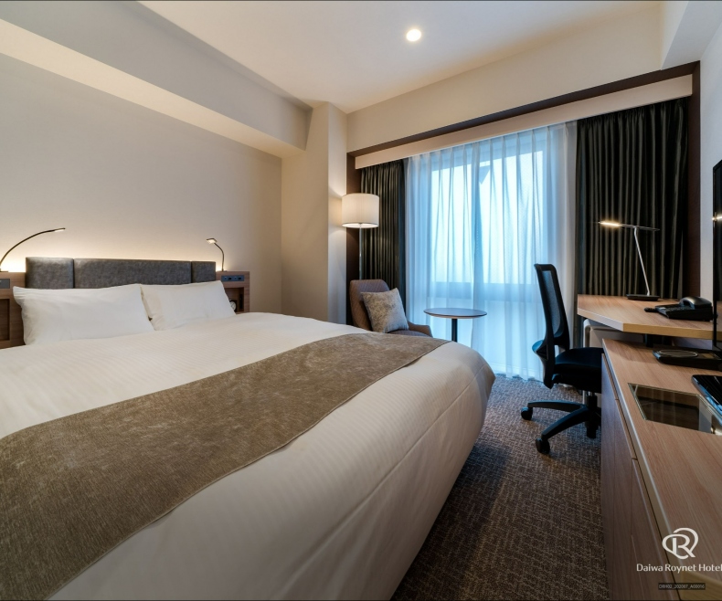 広さ21平米以上のスタンダードダブルルームを中心に、マッサージチェア付きの客室や全面フローリングの客室など等様々なタイプをご用意。デスクワークにも充分な広さのワイドデスクと明るいデスクライトはお仕事にも便利。