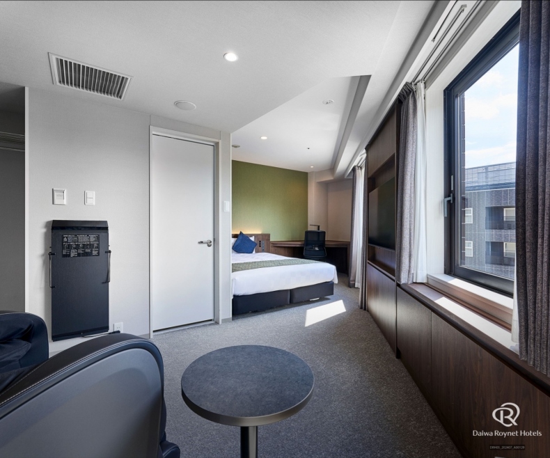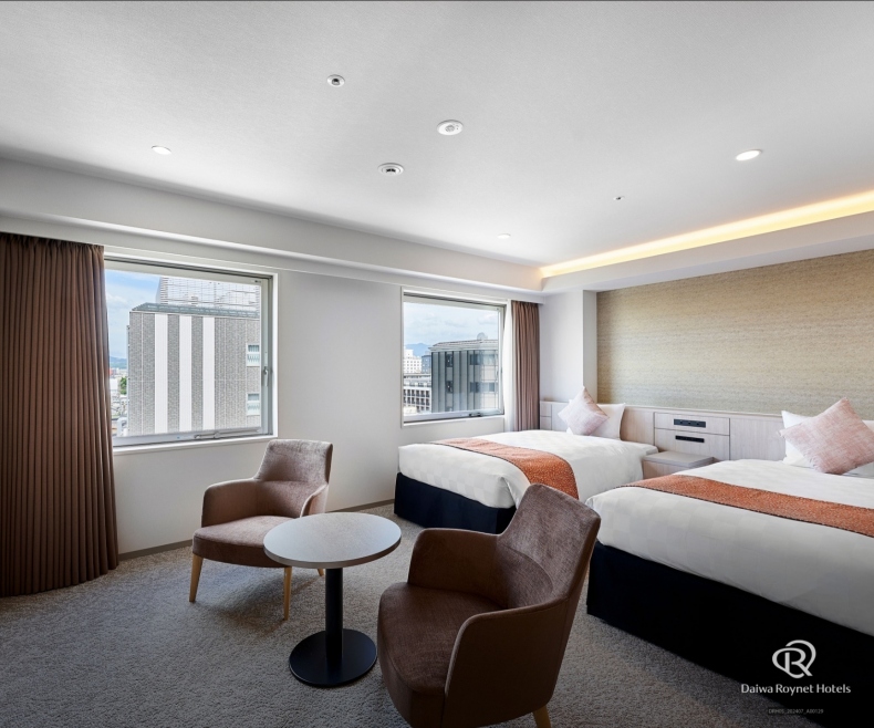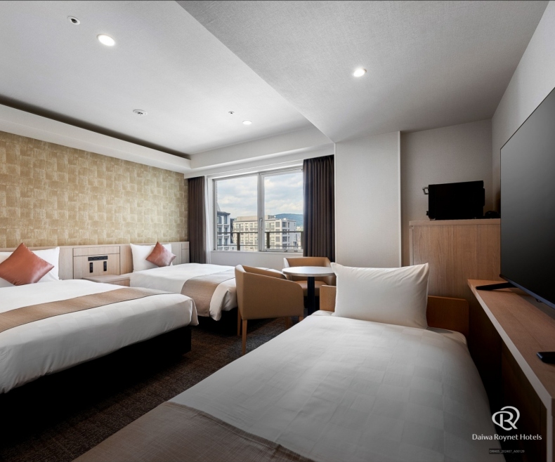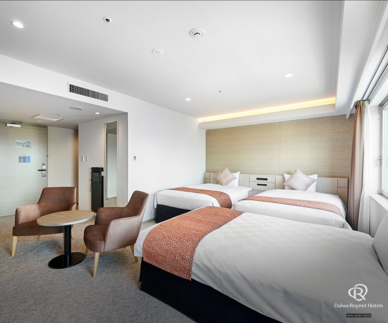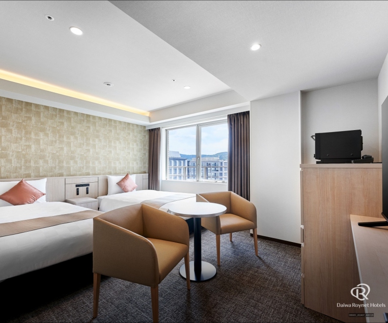 所有客房均为18平方米以上的宽敞设计。即使摆放了行李箱,也可确保足够的富余空间。