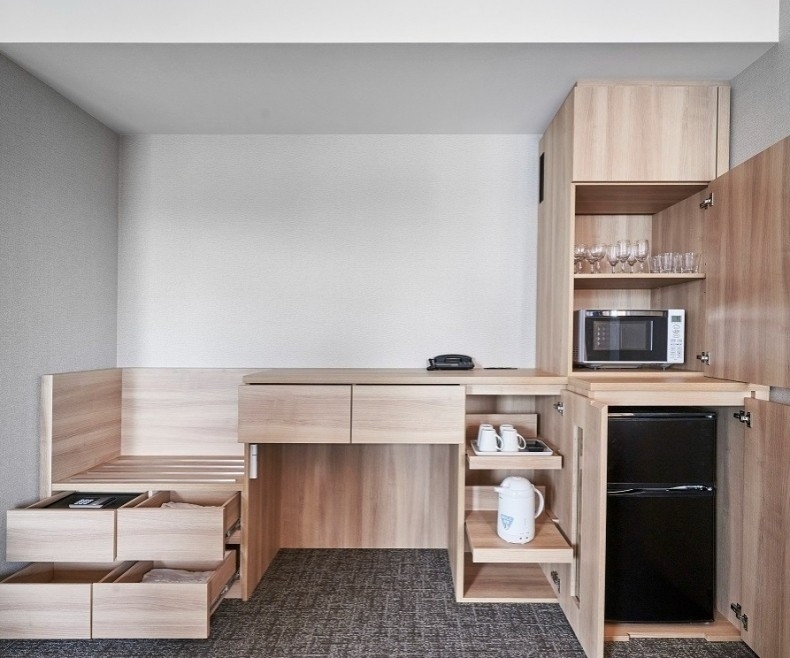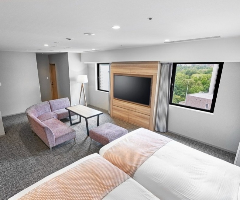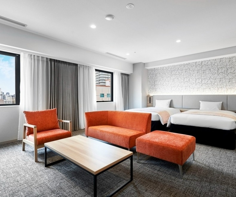 所有客房均为18平方米以上的宽敞设计。即使摆放了行李箱,也可确保足够的富余空间。