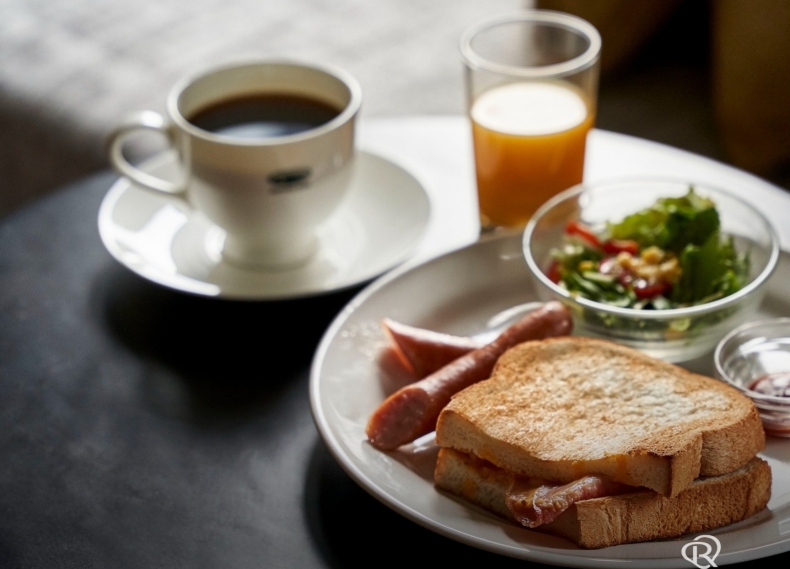 早上从咖啡馆的早餐开始享用一杯美味咖啡。