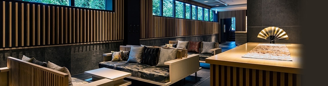 以象徵京都的和服文化為主題,館內裝潢以華麗的西陣織作為基調。