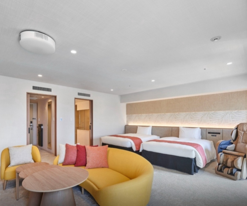 設置加濕空氣凈化器,打造舒適、清潔的客房空氣。對於冬天容易乾燥的客房,是令人滿意的裝備。
