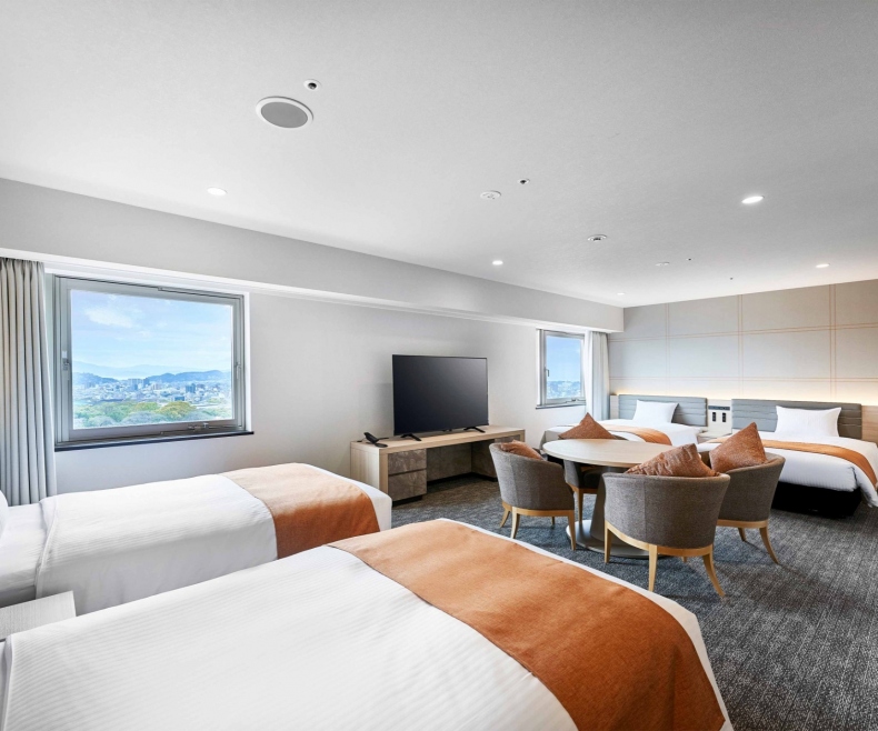 | Room features | *Baby crib can be set up. The spacious 26.8㎡room with two 122cm wide beds can comfortably accommodate guests such as families with children, friends, or couples. Two single beds can be made into a hollywood twin bed. ReFa curling iron, and ReFa shower haead are setting in the room. |