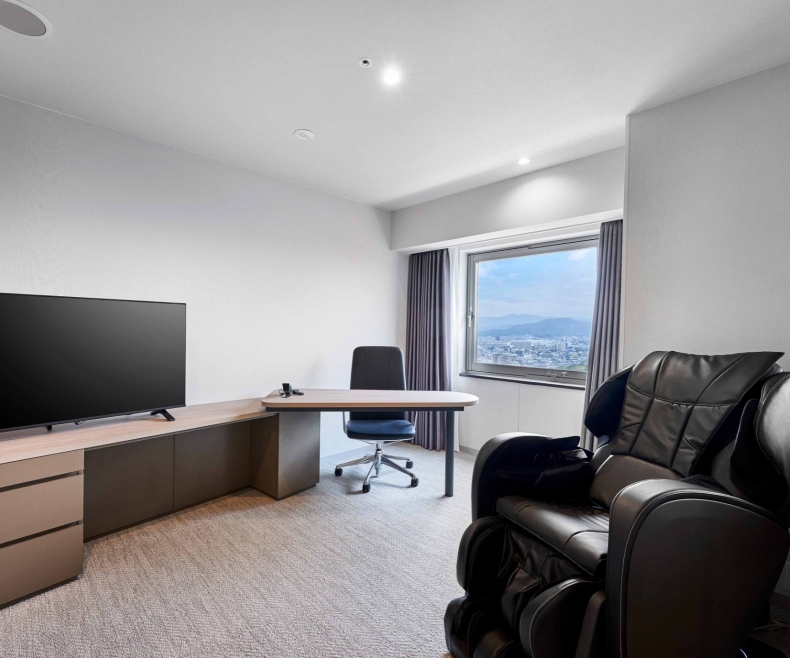 | Room features | The spacious 26.3㎡room with a 168cm wide bed and a massage chair can comfortably accommodate two guests. |