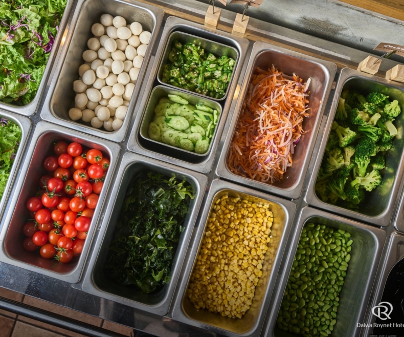 福山駅前の便利なロケーションにありながら、開放感のある落ち着いた空間で、地元食材や日替わり料理を取り入れたビュッフェスタイルの朝食をお楽しみいただけます。