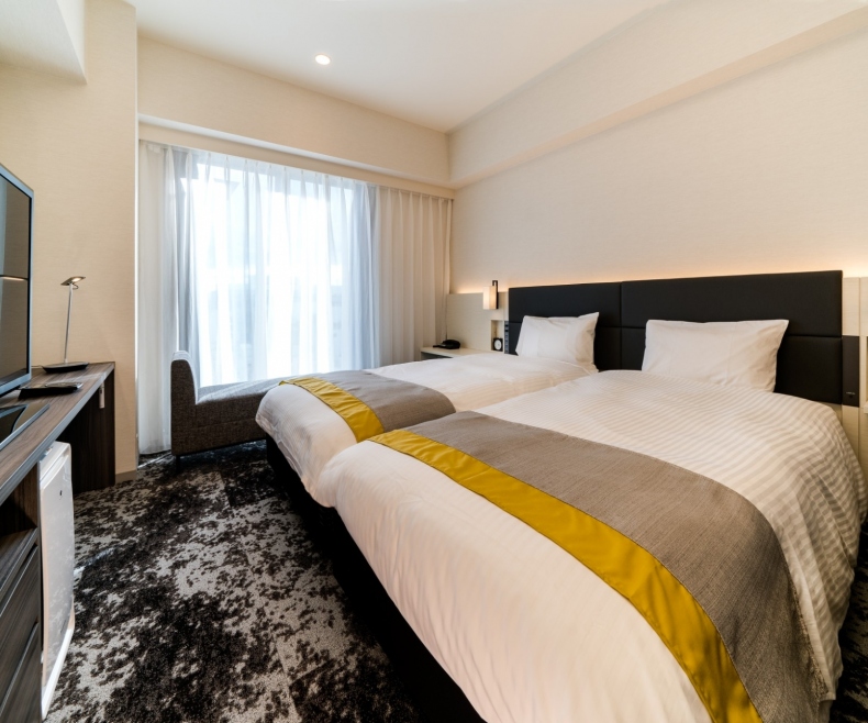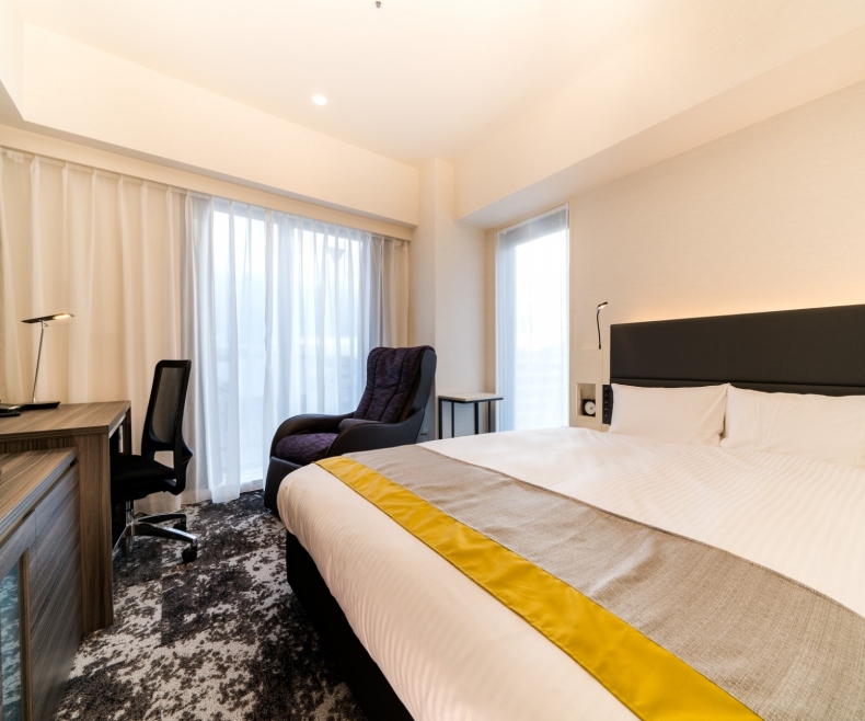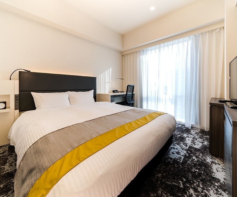 ダブルルームはベッド幅154cmで、おふたり様でもゆったりとご滞在いただけます。