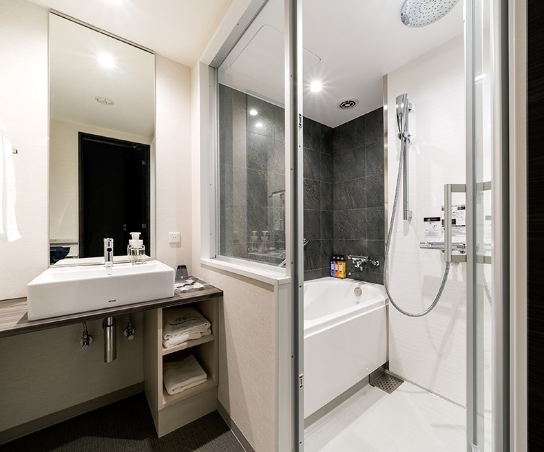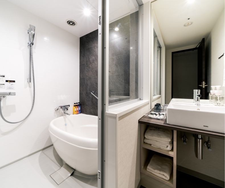 バス・トイレ セミセパレートで、充分なプライベート空間を確保。グループでの滞在にもおすすめです。(ユニバーサルルームのみユニットバス)