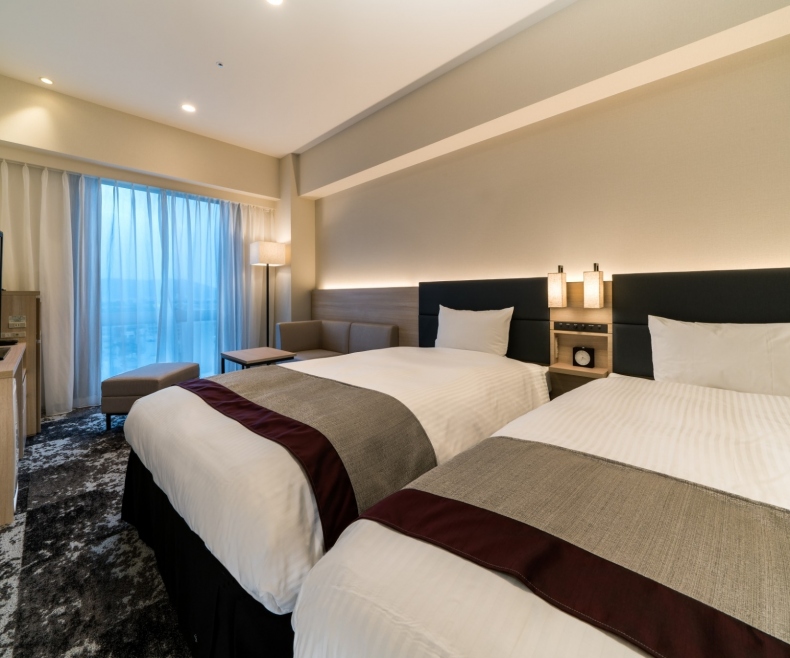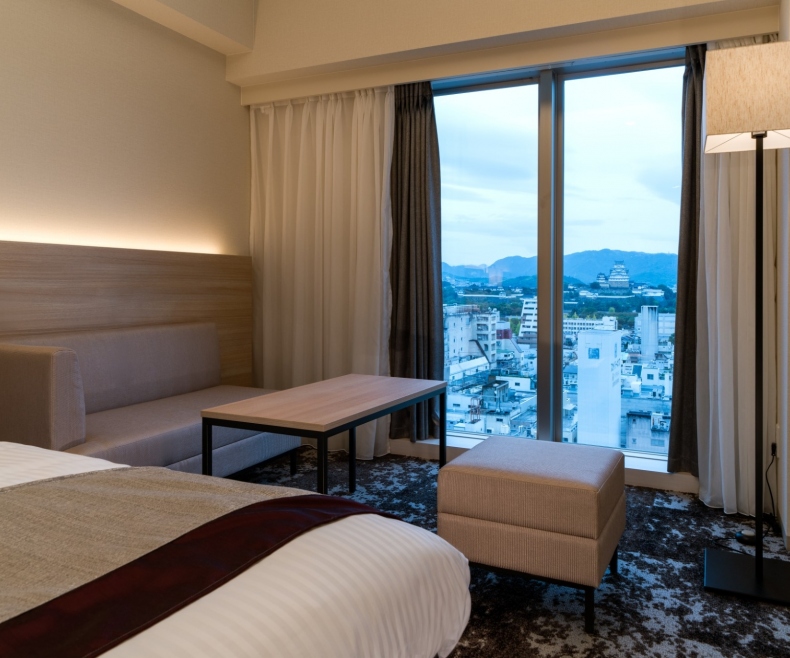 またスタンダードツインとデラックスツインはエキストラベッドを含めて3名様まで、お部屋から姫路城が見えるキャッスルスイートは4名様までご宿泊可能。