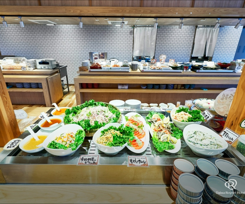 全国に展開するぶどうの樹グループがダイワロイネットホテル広島駅前の20階にあり、地元広島で採れたお野菜をはじめ、こだわりの食材を使った身体に優しい名物料理などをビュッフェスタイルでご用意。