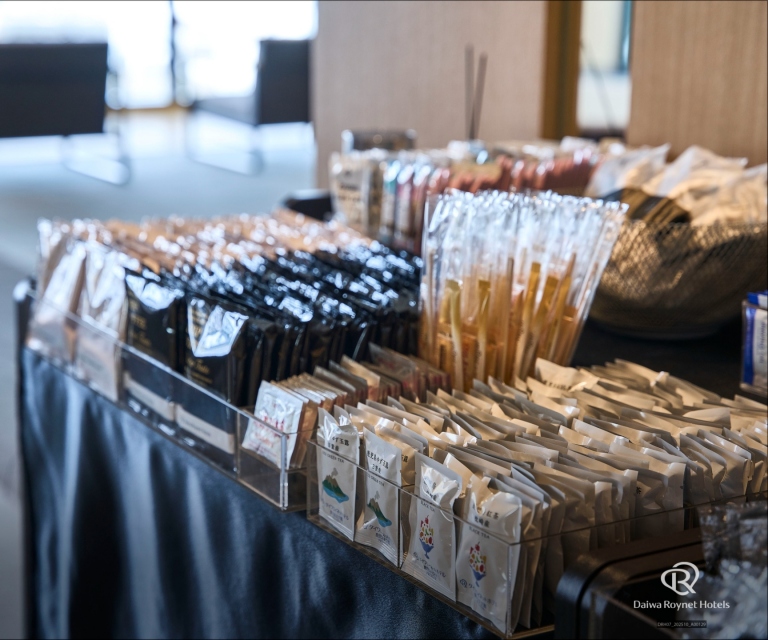 鹿児島県産の茶葉を使用したティーバックを数種類、ドリップコーヒーを2種類ご準備しております。