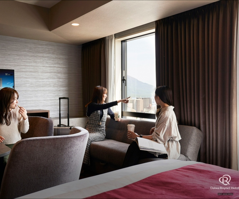 26平米でベッドサイズは110cmのシングルを2台とエキストラベッド1台を用意