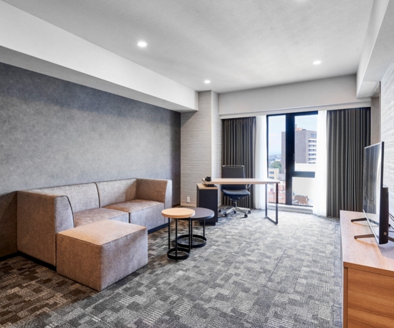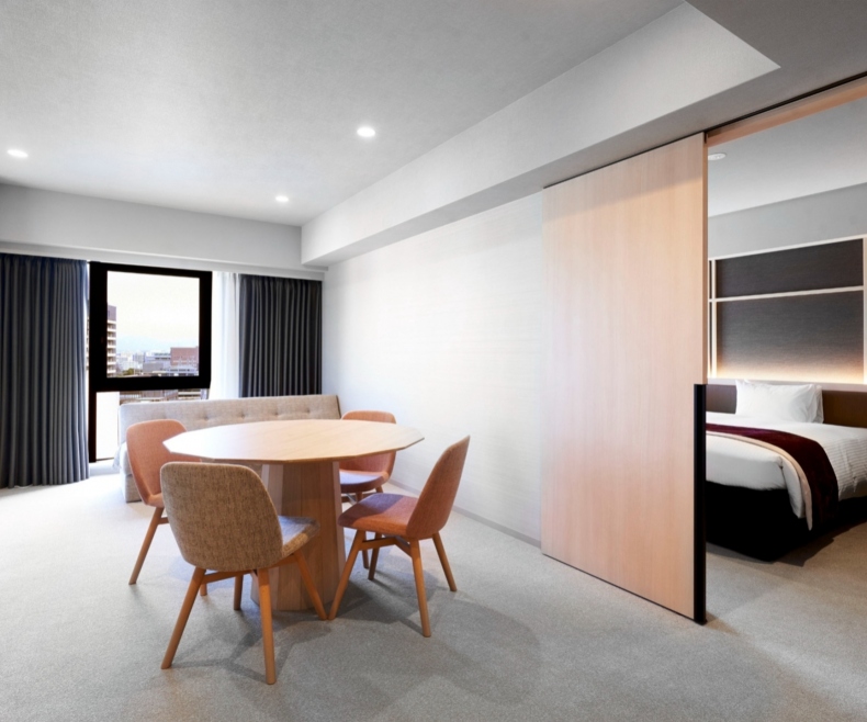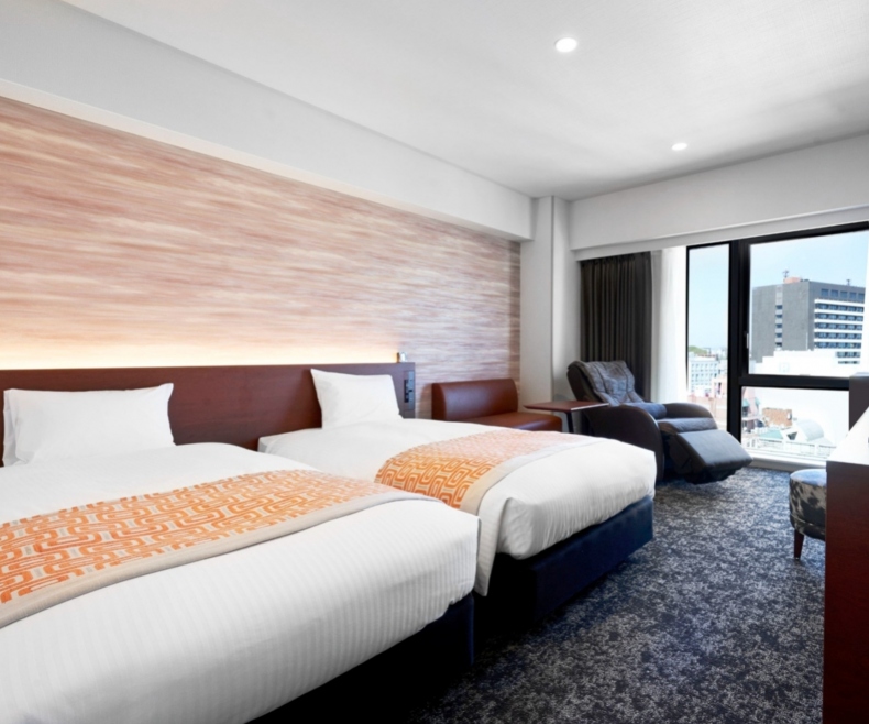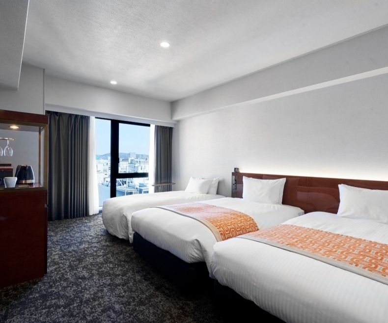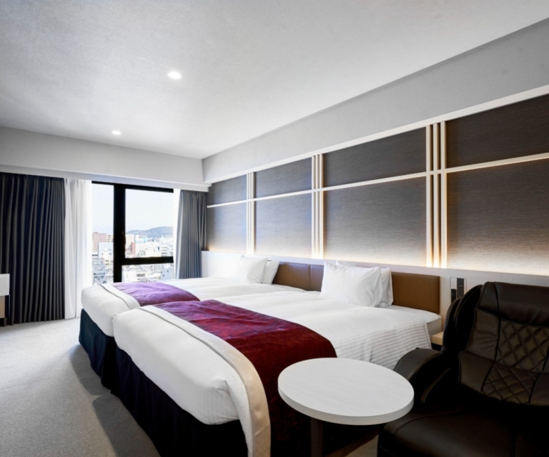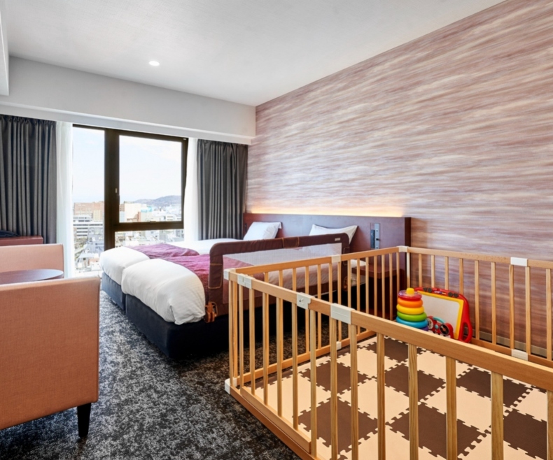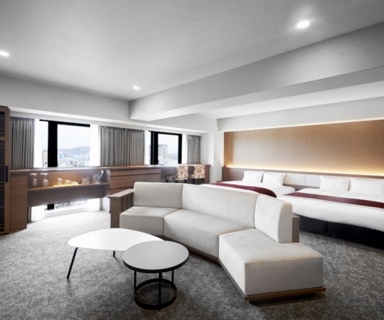 | 特徴 | 26㎡の広さで、バス・トイレは使い勝手の良いセミセパレート。 キングサイズのベッドで、2名利用でも快適にお過ごし頂けます。 ・49型液晶テレビ ・ベビーベッド設置可 |