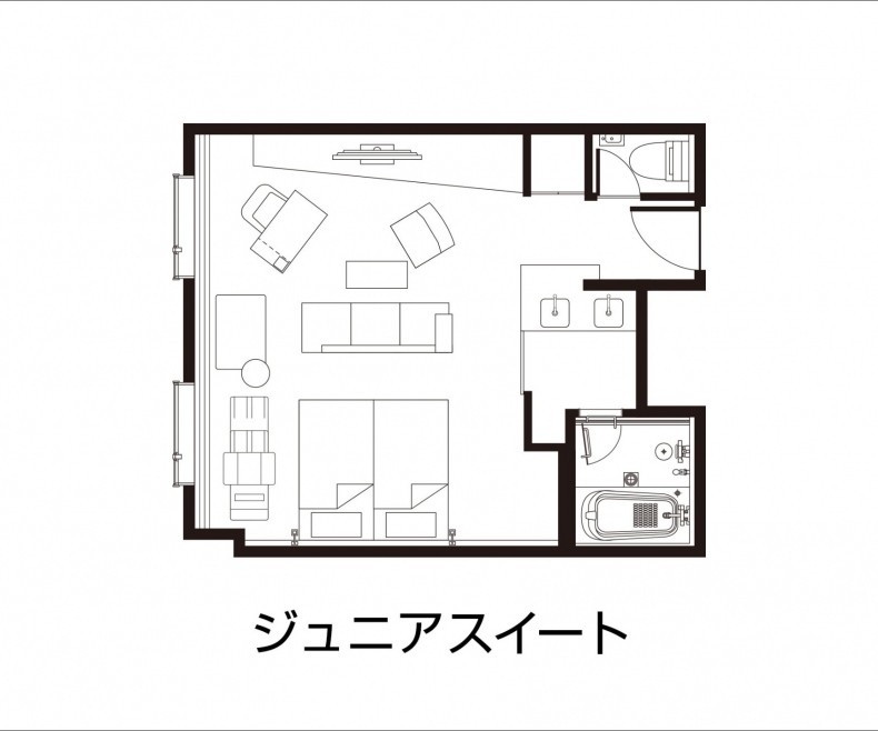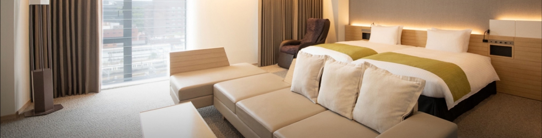 전 객실을 18㎡ 이상으로 여유롭게 설계. 여행 캐리어를 놓아도 여유 있는 공간을 확보했습니다.