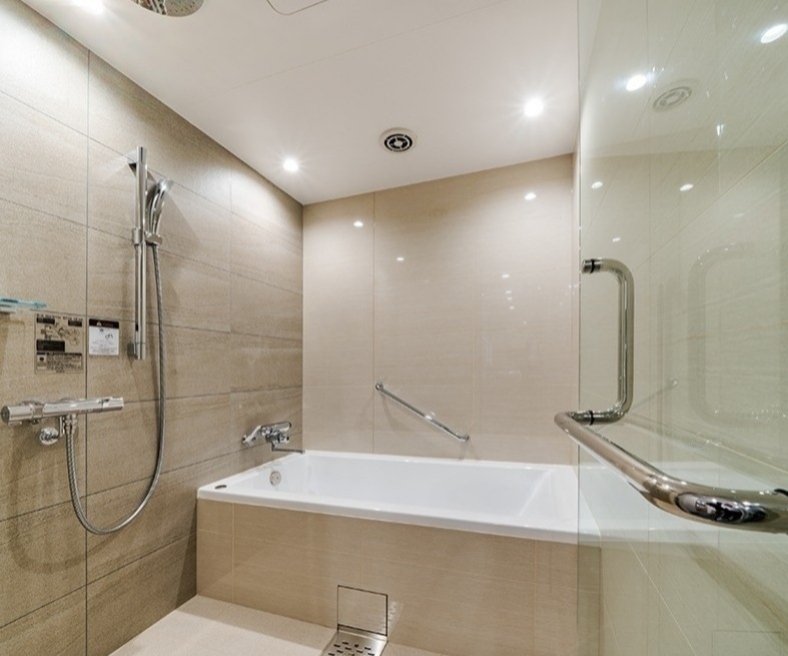유니버설룸을 제외한 모든 게스트룸에는 반분리형 욕실이 있습니다. 욕조와 변기는 유리문으로 구분되어 있습니다. 욕실에는 오버헤드 샤워기가 설치되어 있습니다. 공간은 넓을 뿐만 아니라 사적으로 디자인되었습니다.