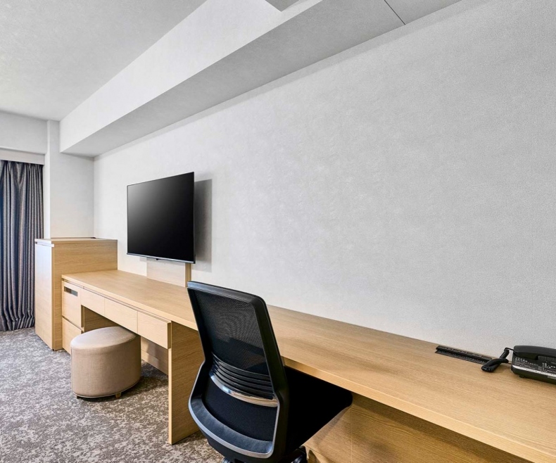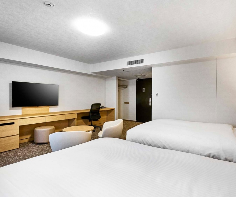 전 객실을 18㎡ 이상으로 여유롭게 설계. 여행 캐리어를 놓아도 여유 있는 공간을 확보했습니다.