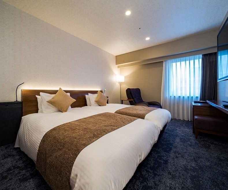 전 객실을 18㎡ 이상으로 여유롭게 설계. 여행 캐리어를 놓아도 여유 있는 공간을 확보했습니다.