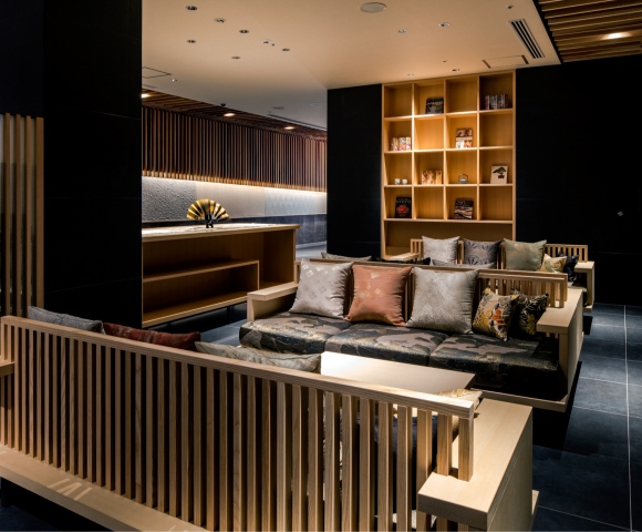 京都を象徴する着物文化をテ-マにし、館内の意匠は華麗な西陣織を贅沢に使用。
