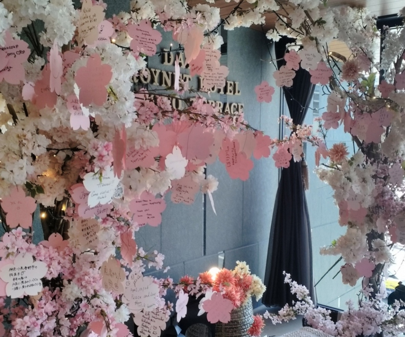 テラスのフォトスポットには、たくさんのお客様に「推しスポット」を書いて飾っていただきました!