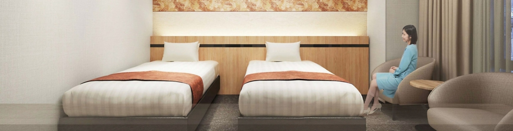 テーマカラーである「椿」と「抹茶」の彩りが松江の趣を映す、静かなたたずまいの客室で心やすらぐひとときをお過ごしください。