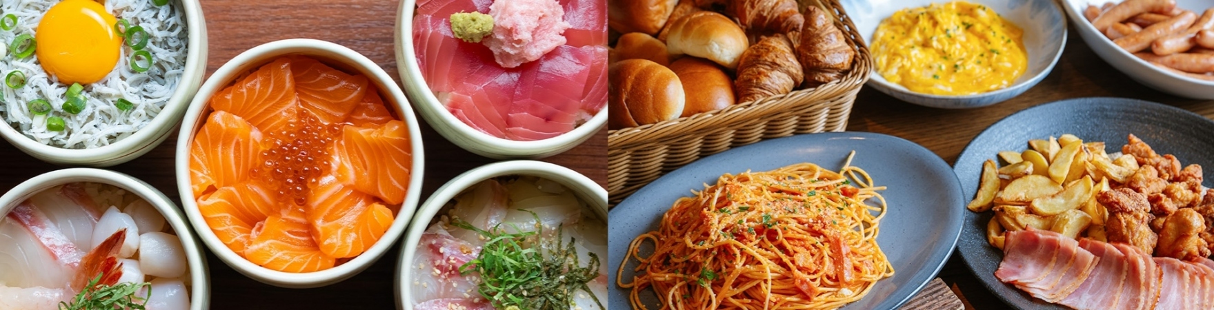 「吉長の和御膳+海鮮ビュッフェ」「サルヴァトーレの和洋ビュッフェ」のご朝食を用意しております。