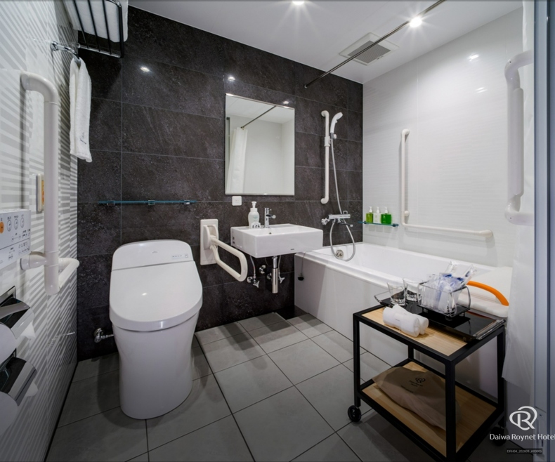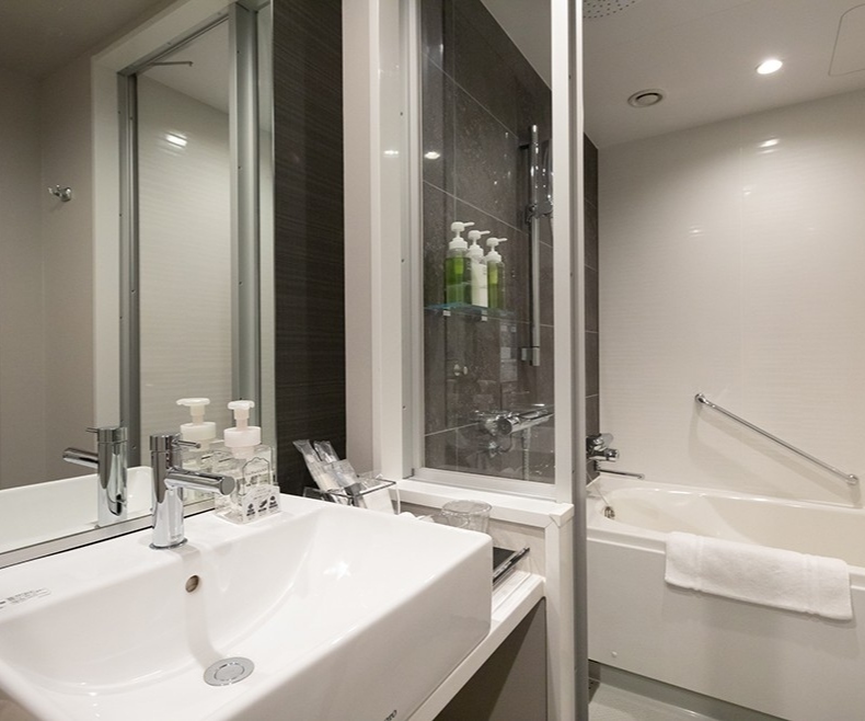 ユニバーサルルームを除く全客室にセミセパレート、又はセパレートタイプを採用しオーバーヘッドシャワーも完備。