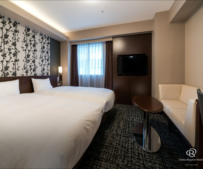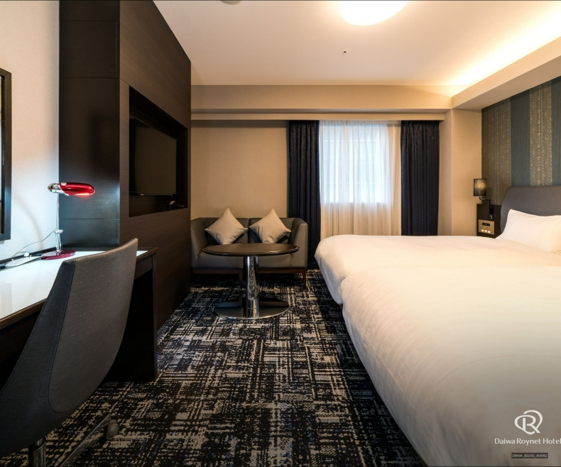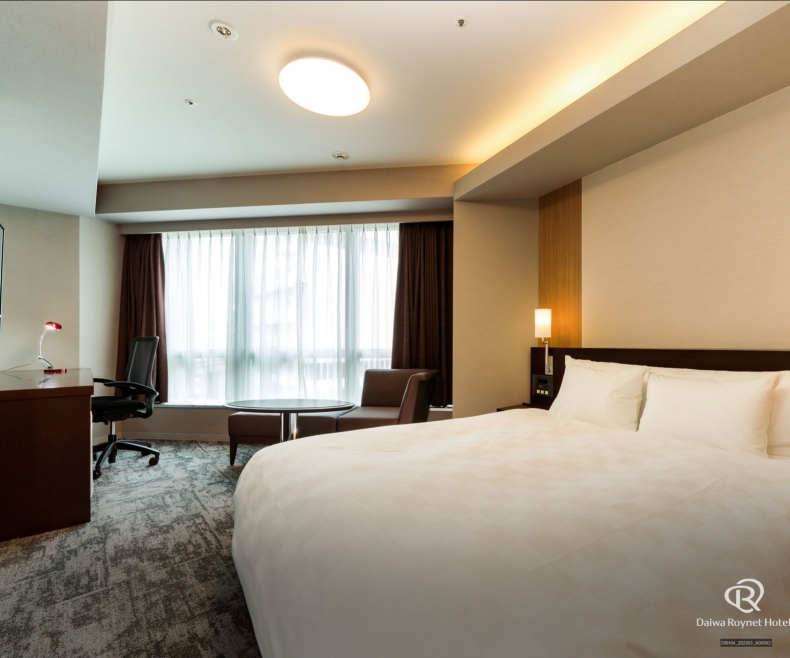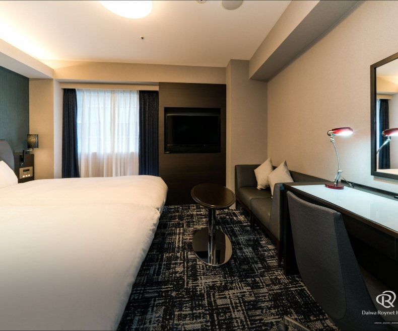 全客室18平米以上のゆったり設計。PC・書類を広げてデスクワークにおススメの環境や、ベッドサイドに電源を確保するなど、充実の設備をご用意しております。