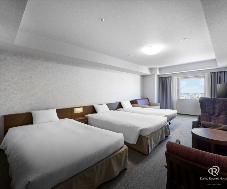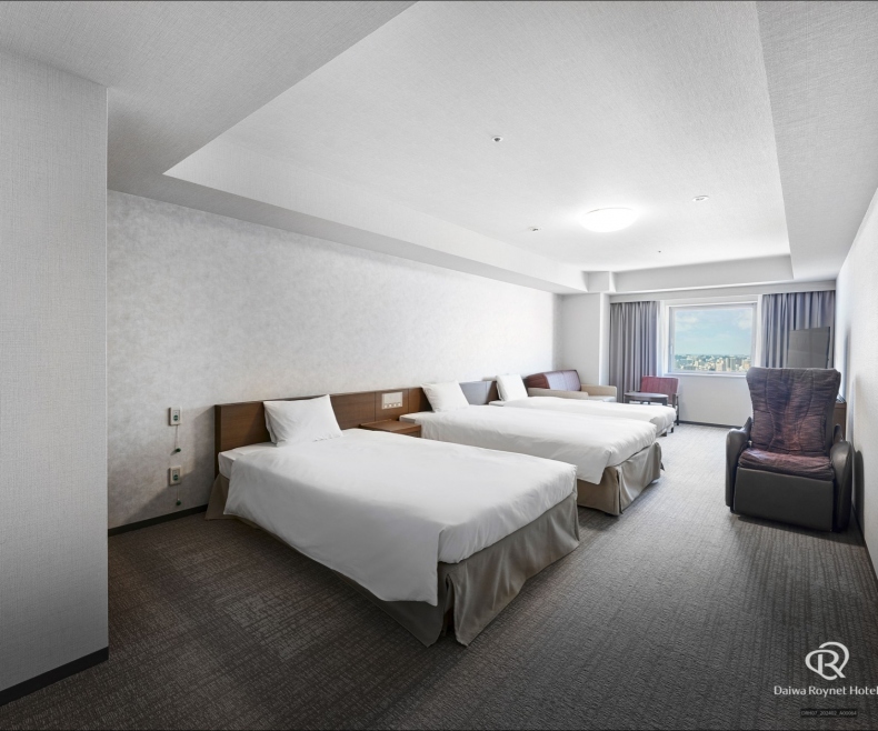 | 特徴 | エキストラベッド設置して4名様まで宿泊可能です。 角部屋で、マッサージチェア完備。 家族旅行やグループ旅行にぴったりです。 ※ベビーベッド設置可 |