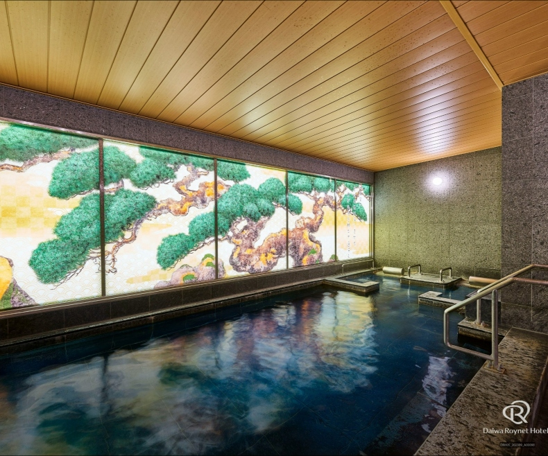 男性浴場には松を、女性浴場には吉野桜を壁にあしらい、湯船につかりながらLEDライトで浮かび上がる様子をご覧いただけます。単純温泉で湯あたりを起こしにくく、お肌にも優しいといわれています。洗い場には、男性浴場、女性浴場共に親子で一緒に座っていただけるよう、2人掛けの親子ブースもございます。