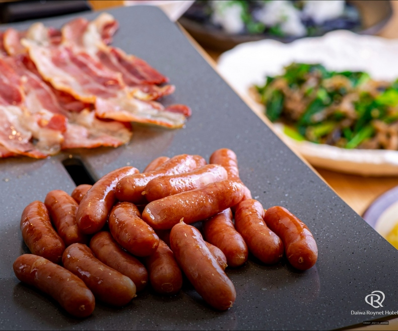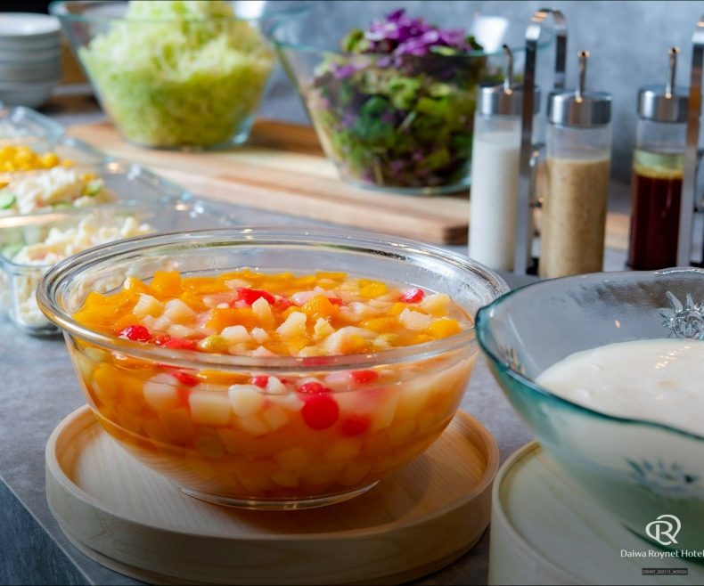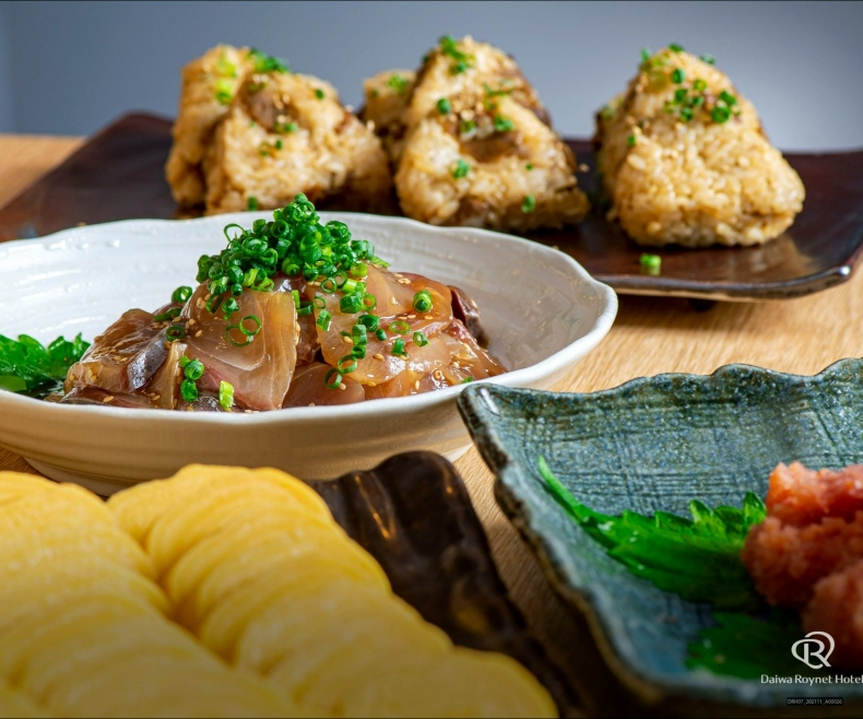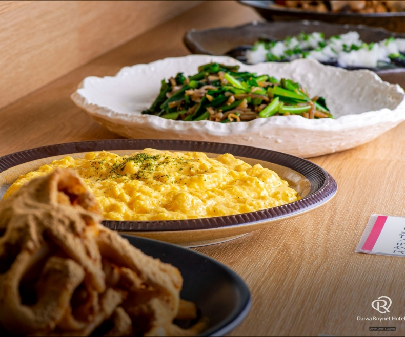 地元野菜を使った一品や、大分の郷土料理「とり天」「唐揚げ」「りゅうきゅう」が自慢の朝食。