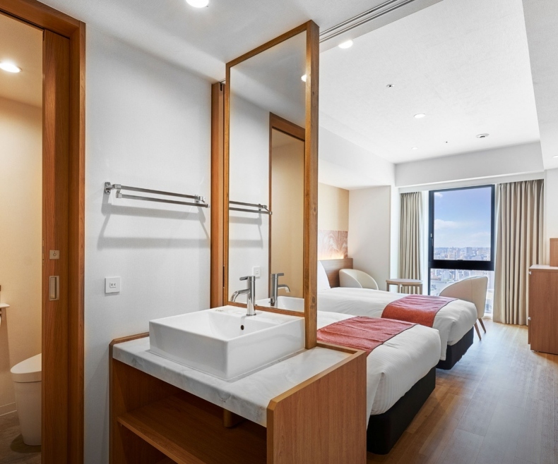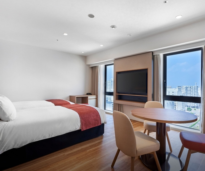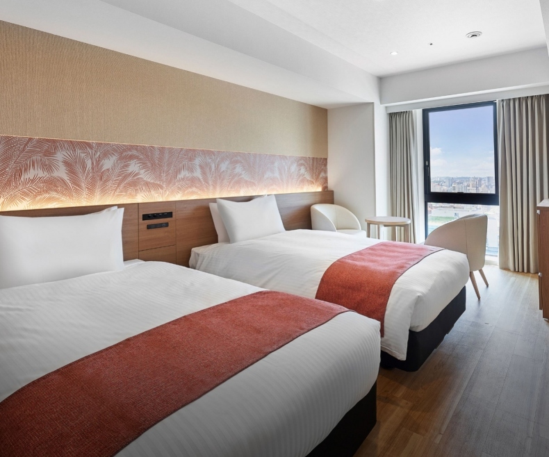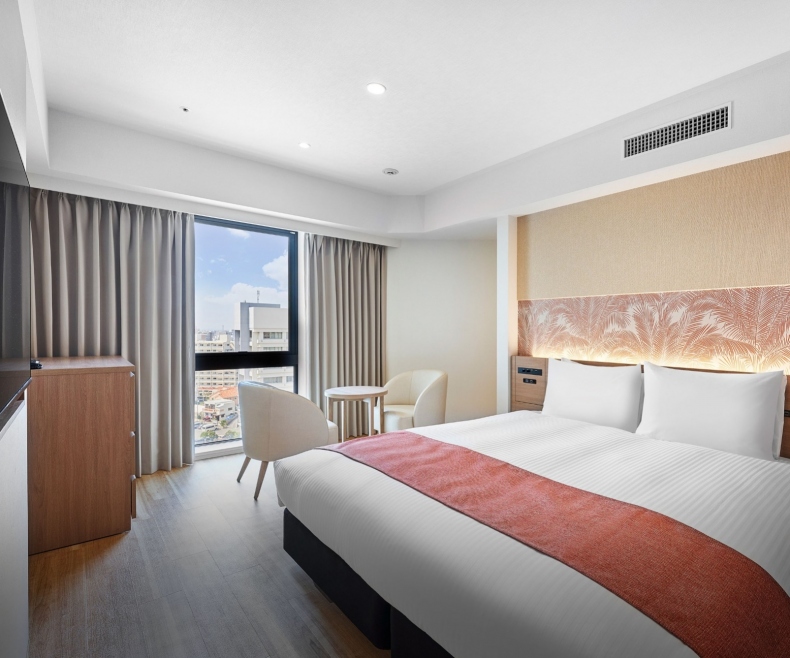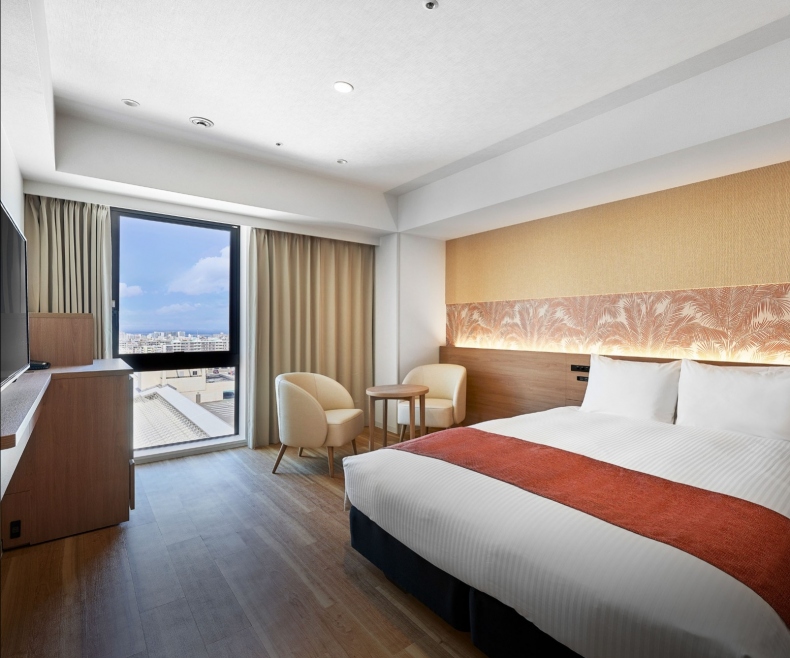 沖縄を連想させる3つのカラーのお部屋は、リゾートインテリアとモダンでスタイリッシュな都市型ホテルのミックス。
