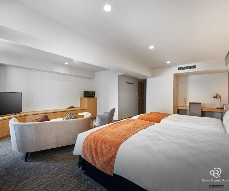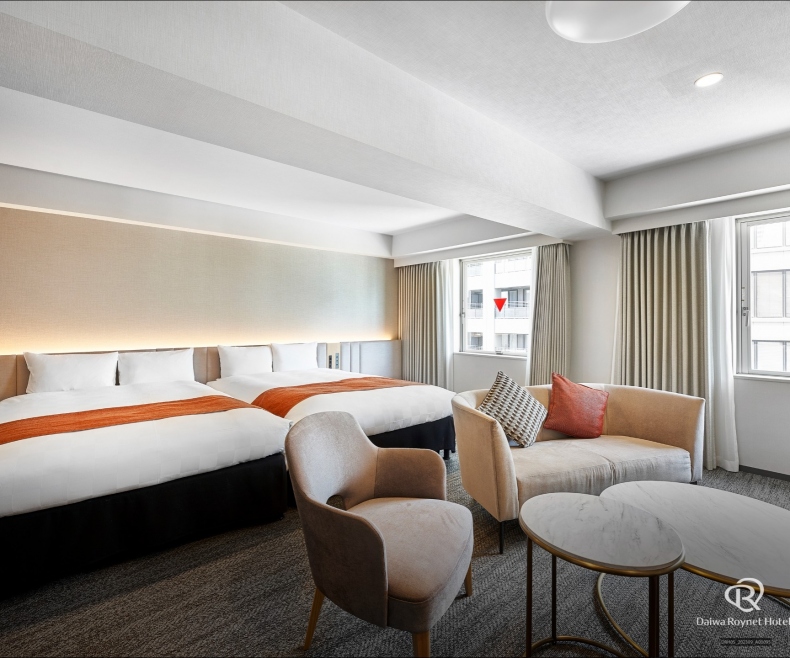 | ベッドサイズ | 140㎝×203㎝ 2台 (エキストラベッド 92㎝×187㎝ 2台追加可能) |