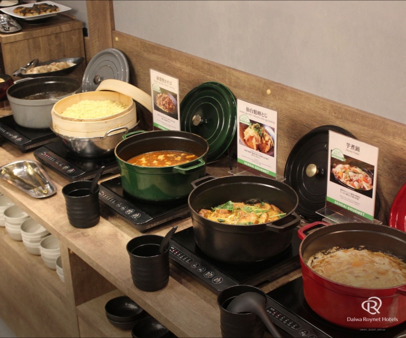 【うんと うめぇ~仙台グルメ】も日替わりで提供しており、「大地の恵 」をコンセプトに朝から、体に栄養!30種以上のバイキングの朝ごはんをご用意しております。