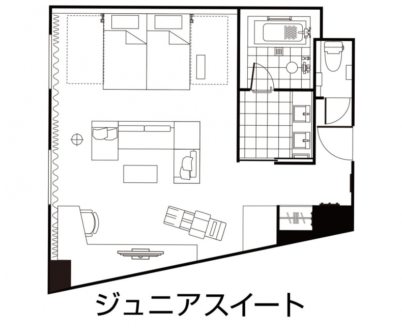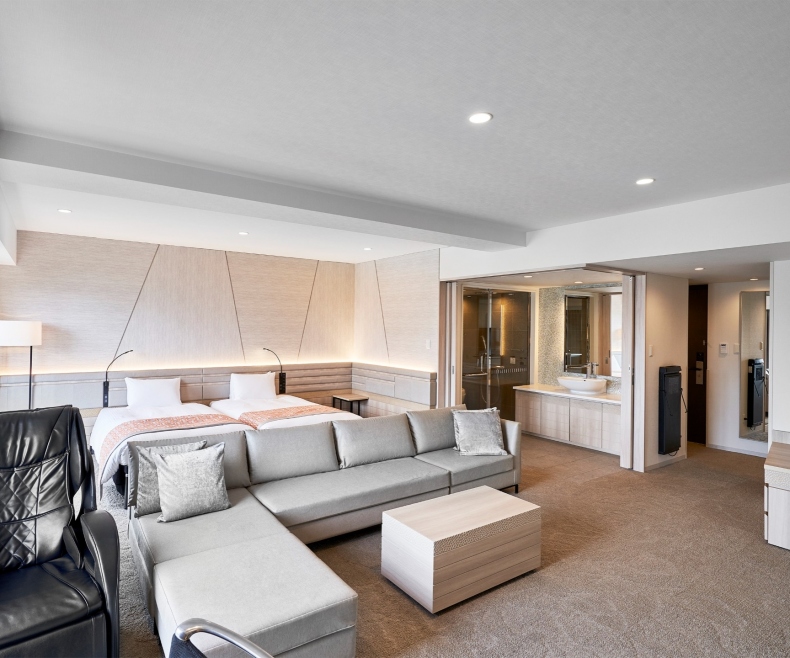 | 特徴 | 当ホテル最上位クラスのお部屋でございます。 当ホテルに2部屋のみの部屋タイプであり、全て角部屋・広瀬通側となっております。 また、バス・トイレは完全セパレートタイプでございます。 オーバーヘッドシャワー、マッサージチェアも完備しており、エキストラベッド使用にて4名まで利用可能なお部屋となっております。 ※ベッド数は大人の人数に準じます(添寝のお子様に寝具の提供は致しません) 小学生以下のお子様が単独でベッドを使用する場合は大人扱いといたします。 |