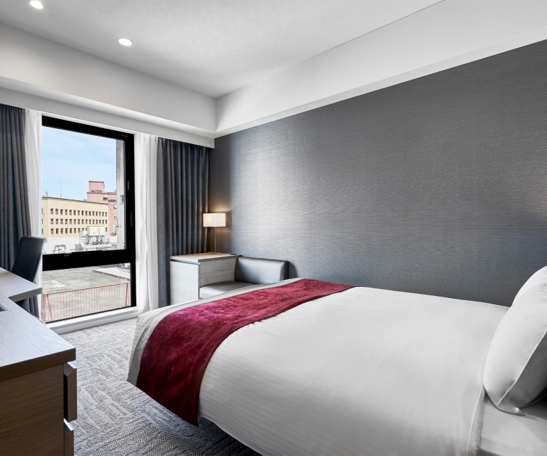 | 特徴 | ベーシックタイプのお部屋で全てのお客様に快適におくつろぎいただけます。 もちろんバス・トイレはセミセパレートとなっており、オーバーヘッドシャワーも完備しております。 ※モデレートダブルは全室側道に面したお部屋です。広瀬通には面しておりません。 ※モデレートダブルの一部客室は消防侵入口の為、窓は外からの開閉のみとなります。客室内から窓の開閉は出来かねます。 |