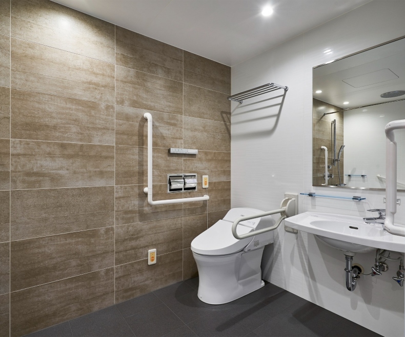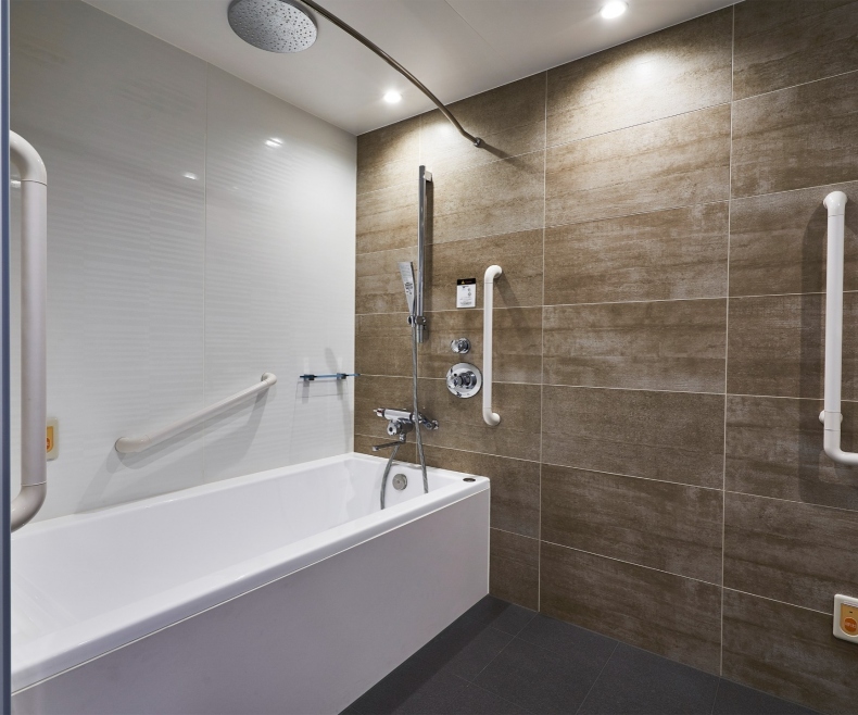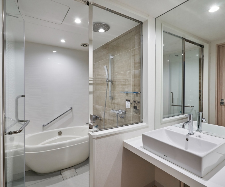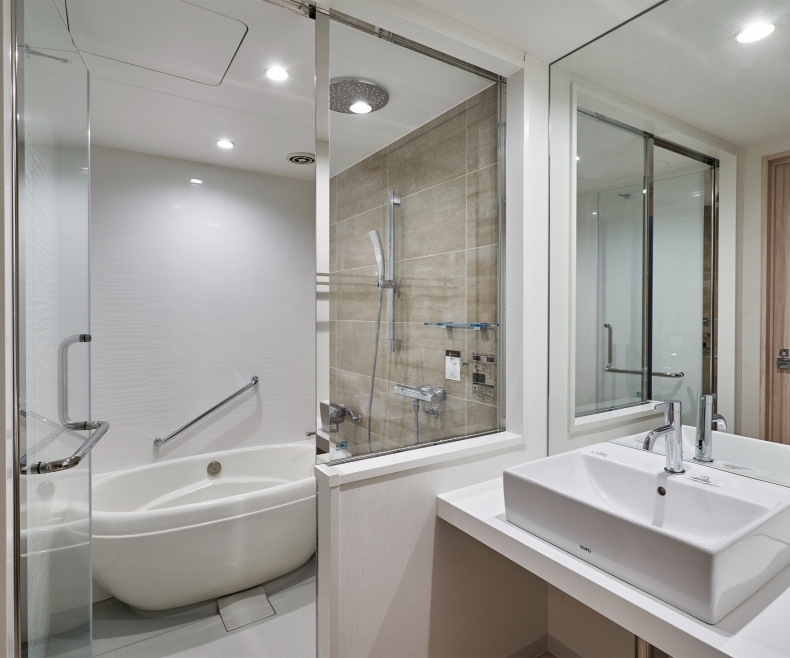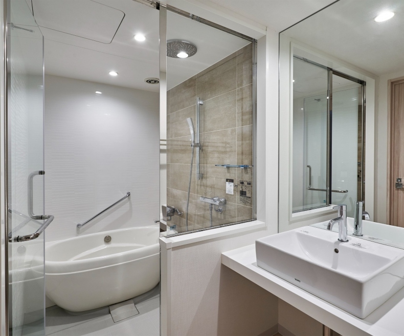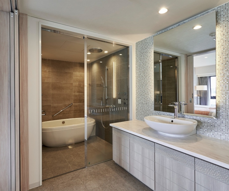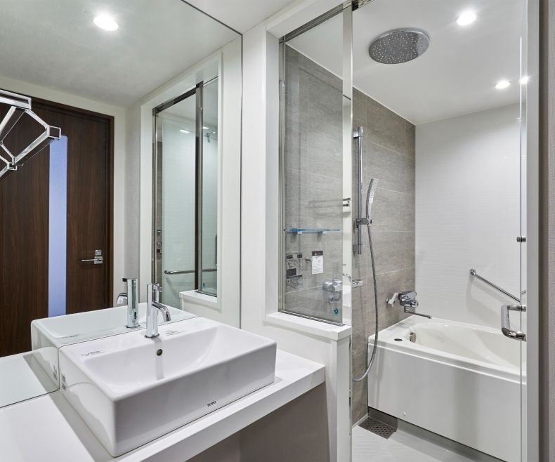 ユニバーサルルームを除く全客室にセミセパレート、又はセパレートタイプを採用しオーバーヘッドシャワーも完備。