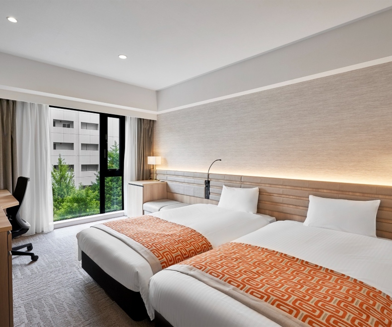 | 特徴 | こちらのお部屋タイプは全室広瀬通側に面しております。 ベッド2台のツインタイプのお部屋でベッド幅もゆったりとしております。 また、2台のベッドをくっつけることでハリウッドタイプとしてもご利用いただけます。 オーバーヘッドシャワーも完備しており、ご家族の皆様にもゆったりとおくつろぎいただけます。 |