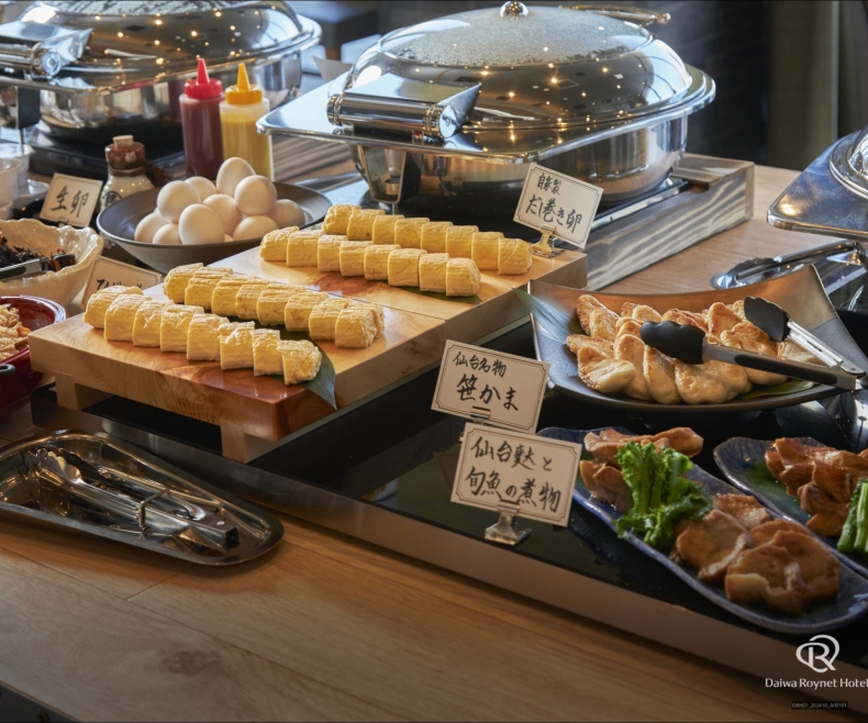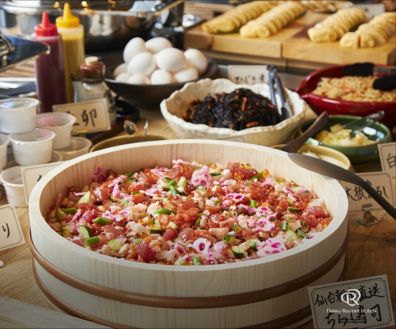 伊達な料理人が厳選した東北・宮城ならではの食材を用いたお料理を和洋のビュッフェ形式にてご用意しております。