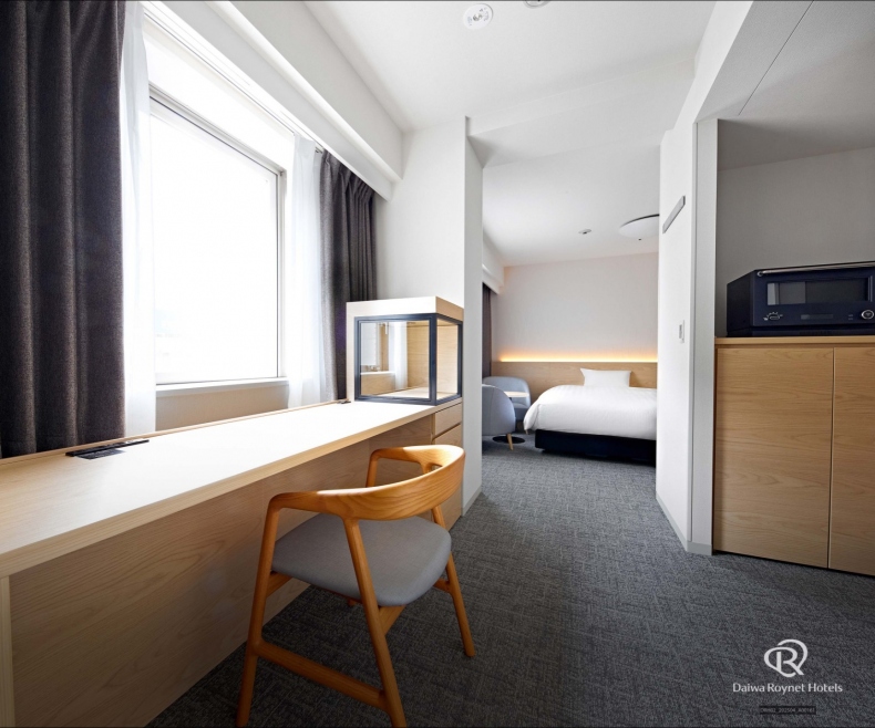 | 特徴 | 全ての方に優しいバリアフリー構造のユニバーサルツイン。 ベッドルームとワークスペースが程よく独立し、「リラックスと集中」それぞれの時間を大切にできるお部屋です。 ※ベビーベッド設置可 |