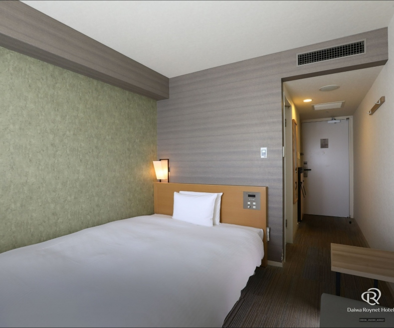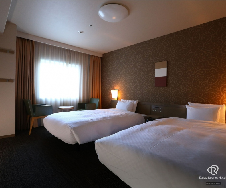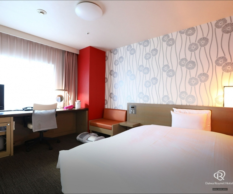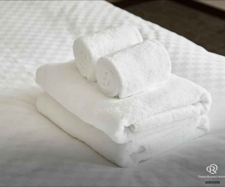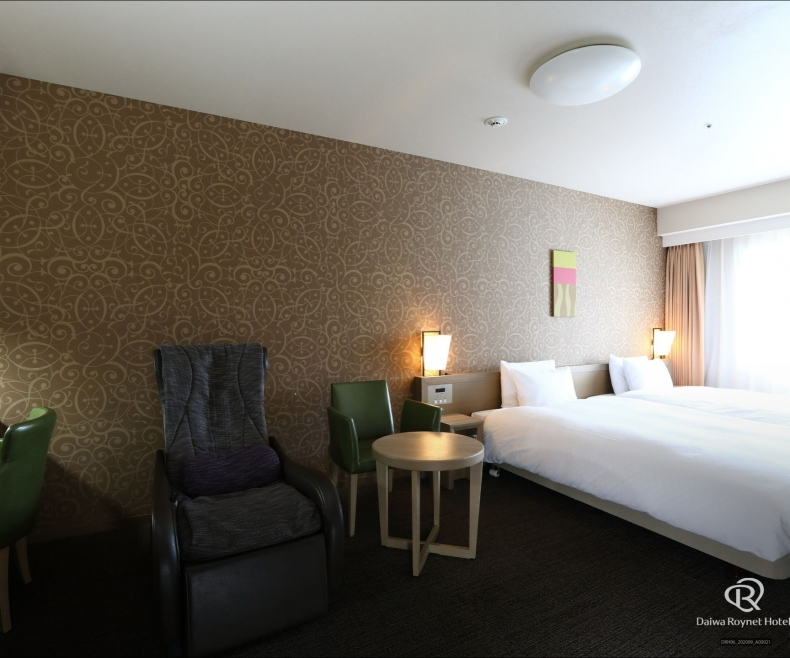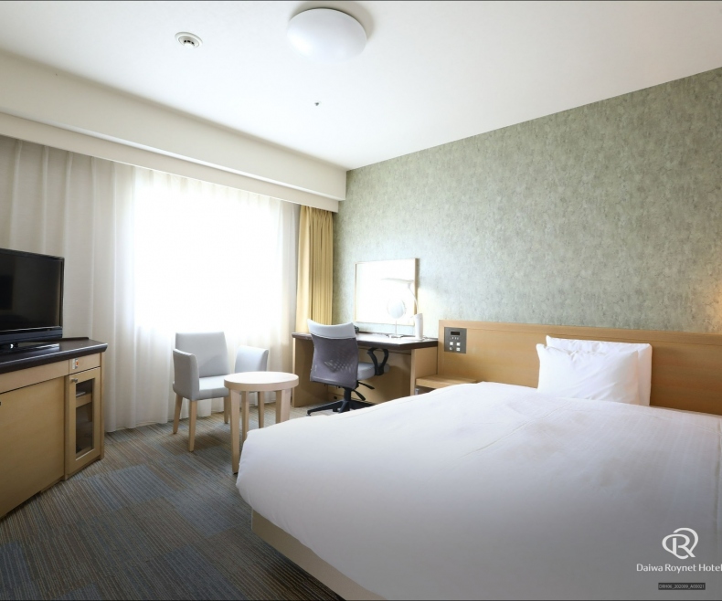 瀬戸内海の落ち着いた海を連想させる内装のお部屋は、全室18m²以上の広さがあり、ワイドデスクを設置し「無線LAN利用」無料で、デスクワークにもおすすめ。大切な身だしなみを整える英国製ズボンプレッサーや花王「リセッシュ」も完備しております。