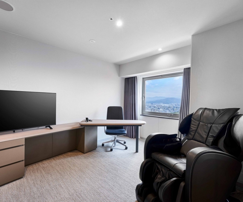 | 特徴 | ※ベビーベッド設置可 ※当ホテル最上階(20階) 約55.4平米のマッサージチェアー付きのゆったりしたお部屋です。 洗面台 2台、電子レンジ 、洗濯機設置 テレビ50インチ 2台(ワークスペース・寝室) オーバーヘッドーシャワー付きの浴室 「ReFa FINE BUBBLE PURE(シャワー)」設置。淀みのない水と微細な泡へのこだわり、やさしく汚れを落とし、心地よく温め、うるおいを与えます。 「ReFa BEAUTECH CURL IRON(カールアイロン)」設置。ReFaの独自技術でプロの技をテクノロジーで再現。 美しい立体感がつづくレア髪カールを叶えます。 |